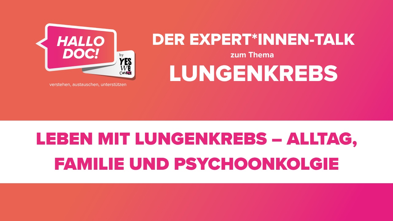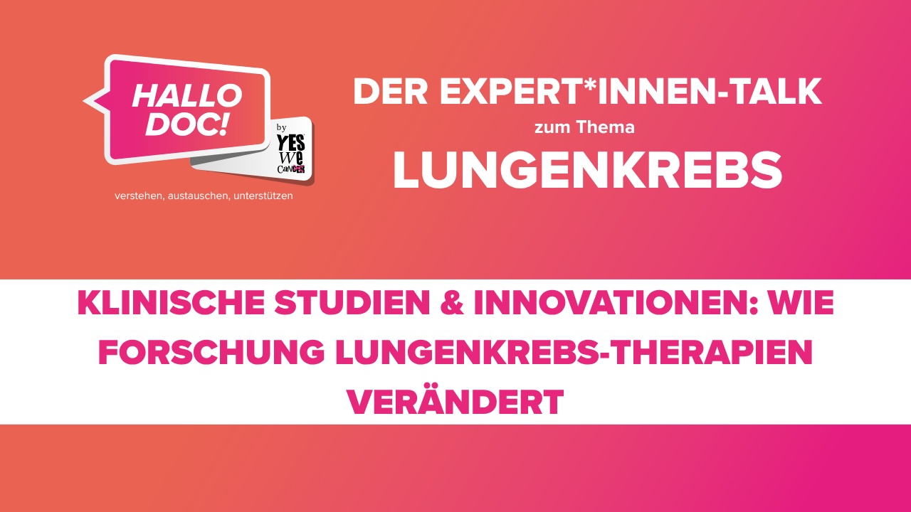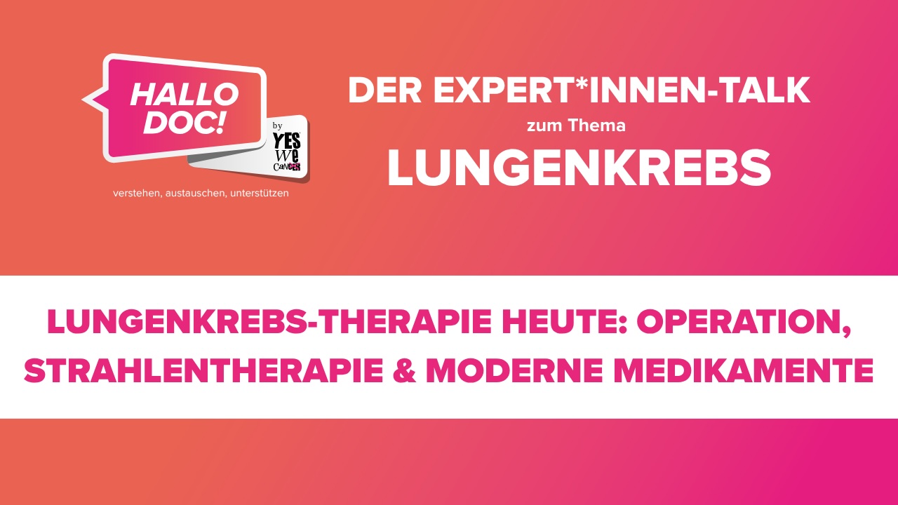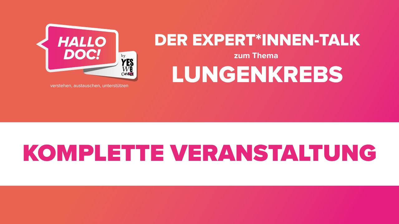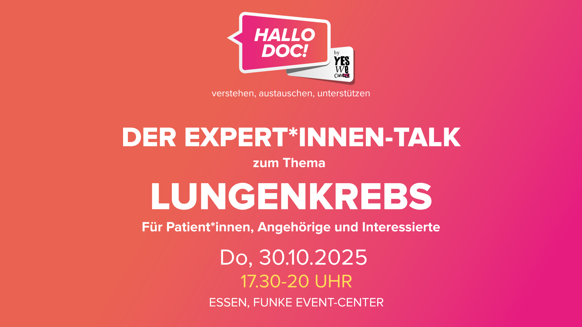 Wir laden dich herzlich zum HALLO DOC! Lungenkrebs am 30. Oktober 2025 in Essen (NRW) ein, 17:30-20 Uhr im FUNKE Event-Center (Raum: FUNKE Lounge).